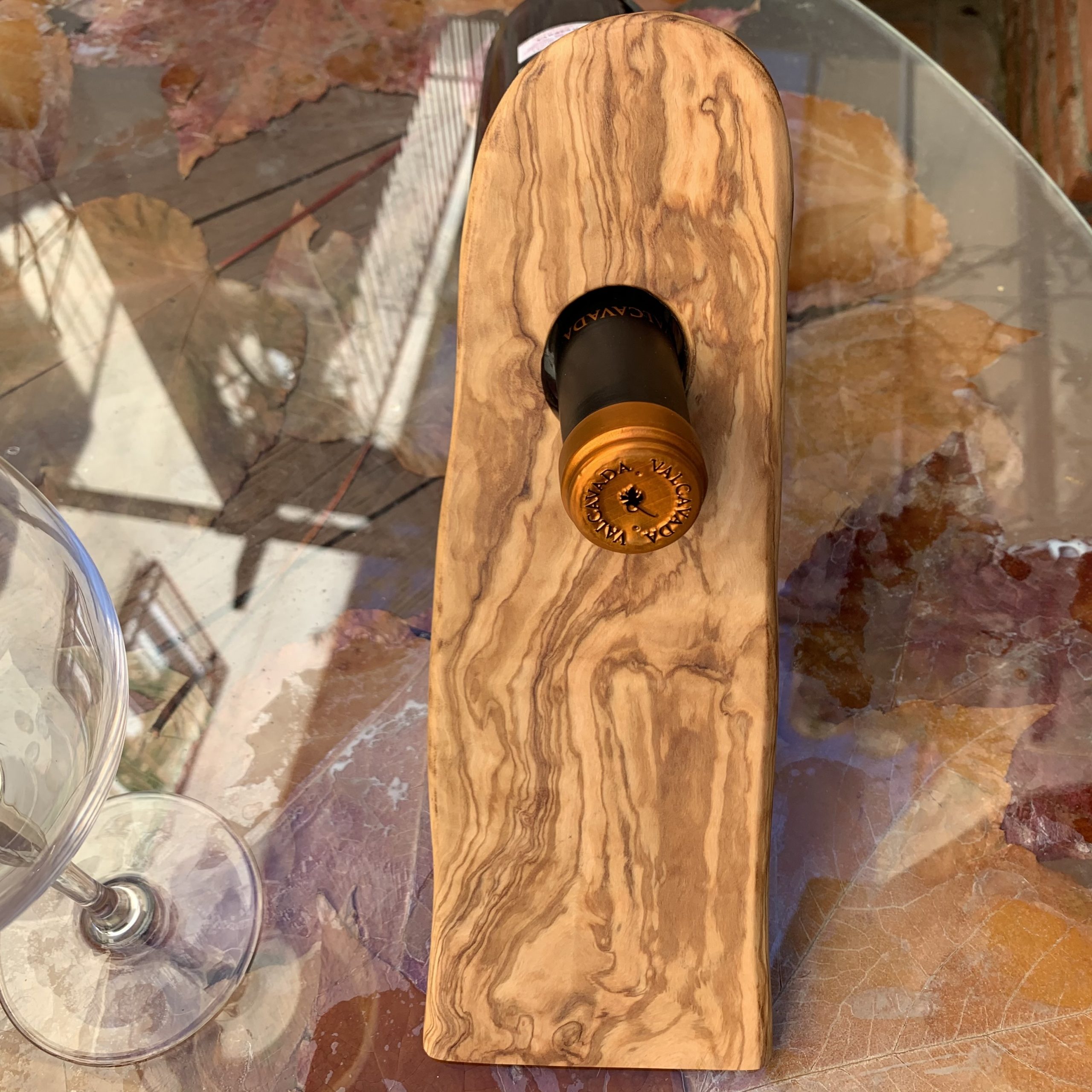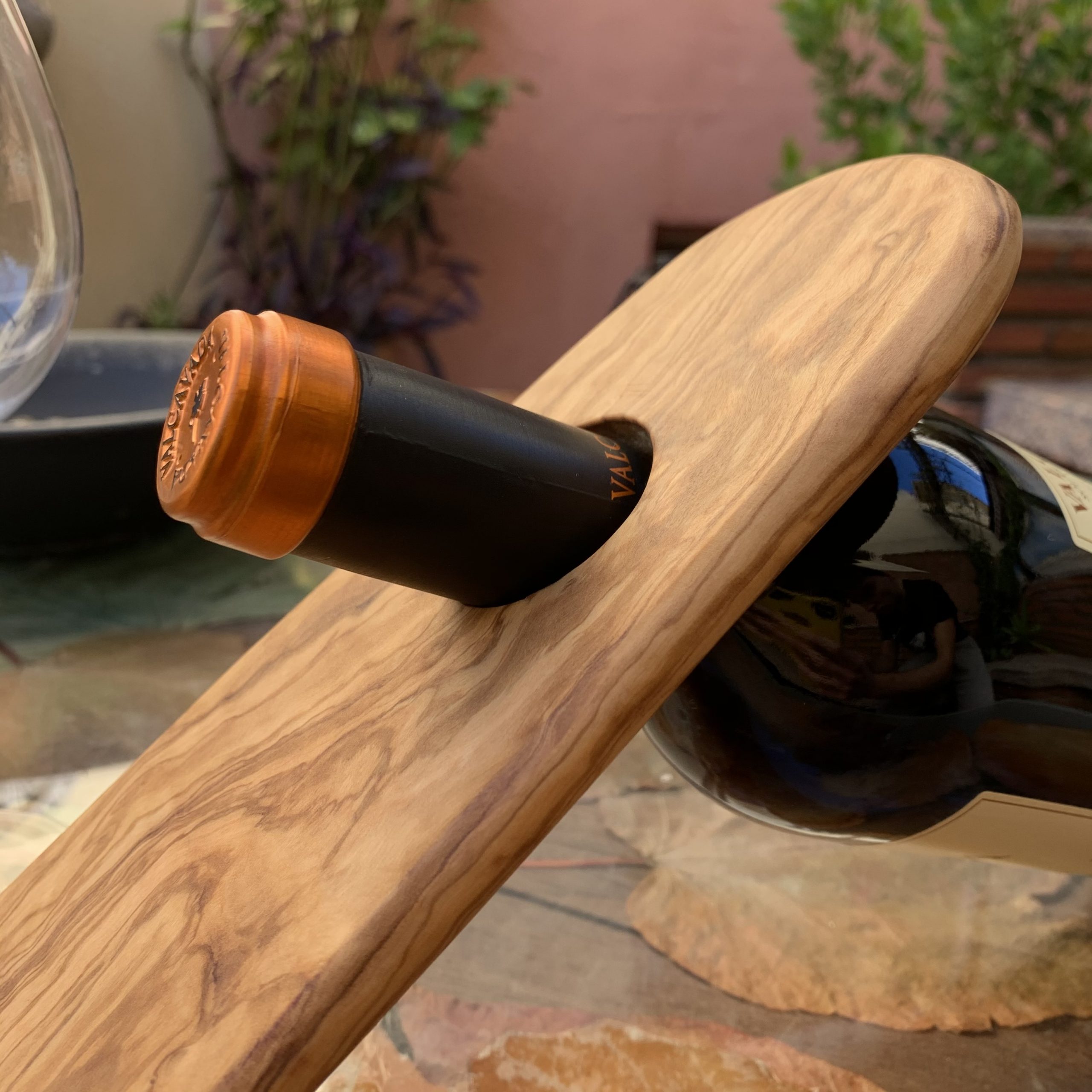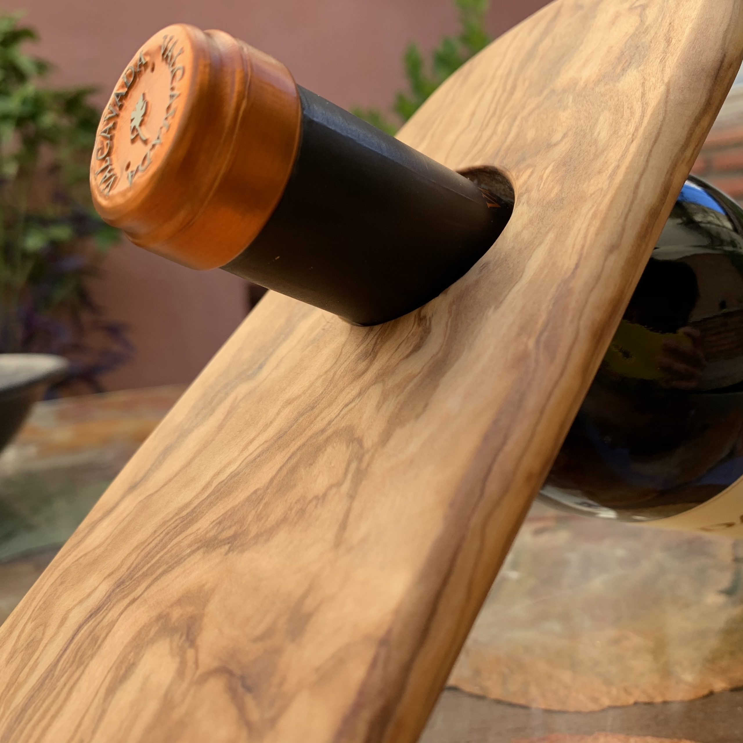 Pieza de Olivo bañada en aceite de linaza y cortada en ángulo para mantener la botella en equilibrio ajustando la botella, ¿eres capaz de equilibrarlo de tal forma que no quede como un botellero cualquiera, o quizá tu amigo es capaz de hacerlo sin apenas esfuerzo? Aquí está la magia de este producto, ¡disfrútalo!